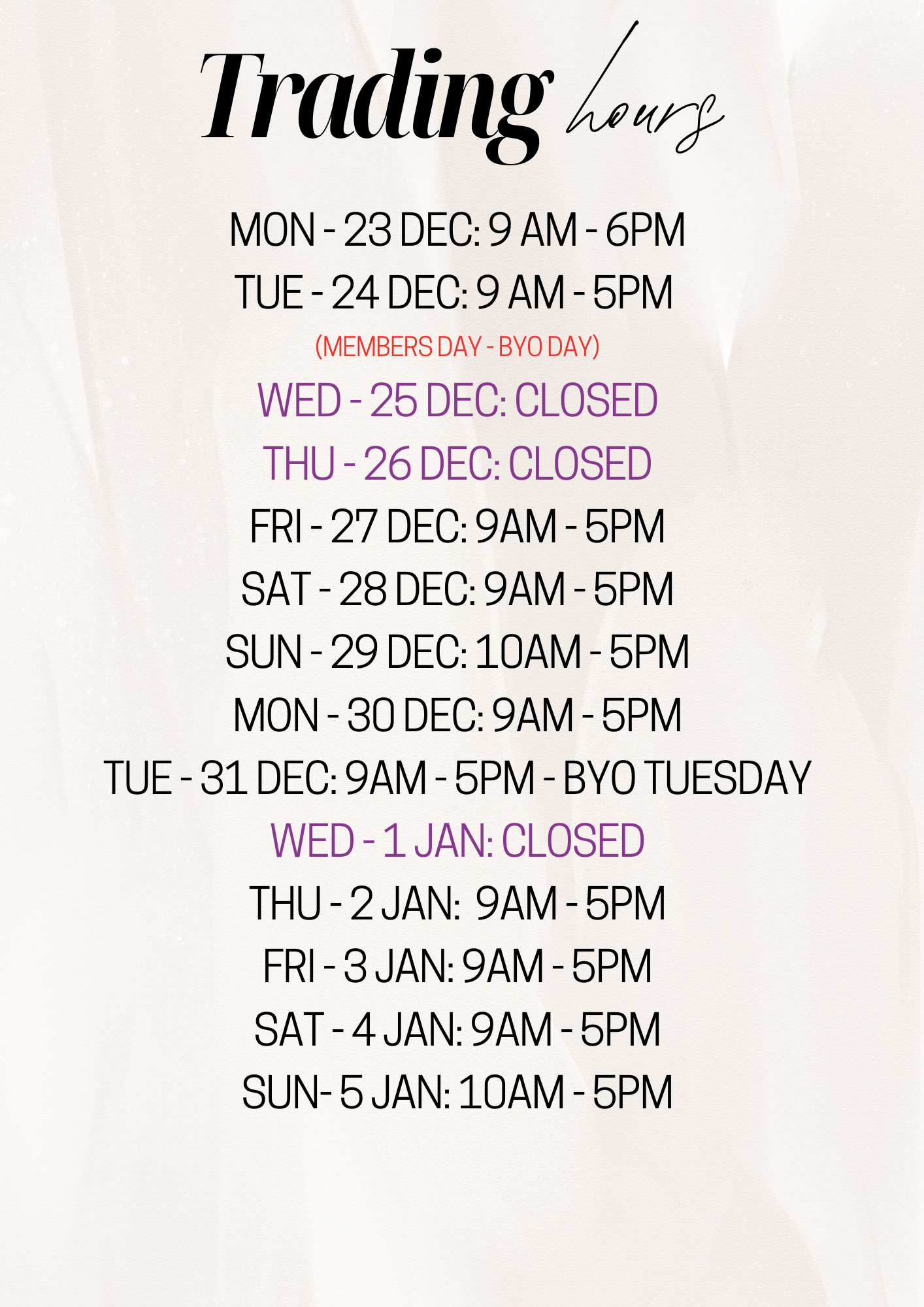 Christmas and New years Trading hours